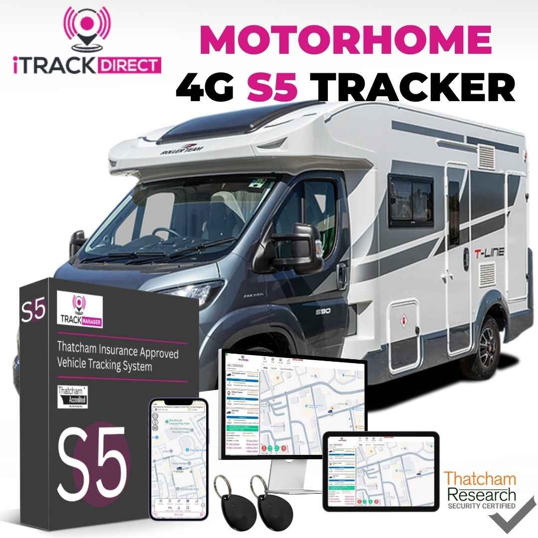 S5 Plus Motorhome Tracker: This is the highest level Thatcham Approved Motorhome Tracker. It has all the features of the S5 with an additional immobilisation feature. Without the Automatic Driver Recognition tag, the vehicle will not start. NO TAG - NO START!
